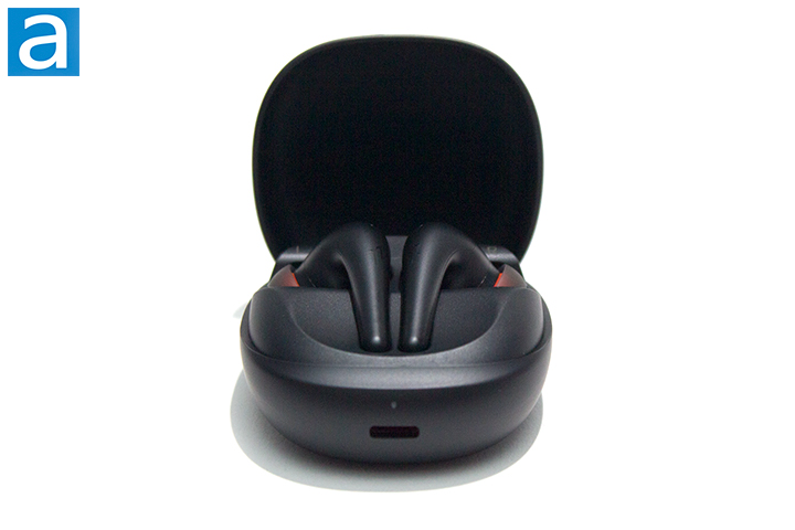 Likewise to all true wireless earphones, 1MORE provides a carrying case that doubles as a charger for the earbuds. The charging case is made out of plastic and has a matte black finish with 1MORE's logo on top. The design is rather minimalist, being quite plain, but also sleek. Nonetheless, it looks and feels good as it is smooth to the touch. It measures in at 25.50mm in height, 46.40mm in width, 61.99mm in depth, and weighs 55.1g with the earphones in. It looks similar to Samsung’s Galaxy Buds in terms of being having a door the flips open like a hamburger fold. Its shape and size make it able to be conveniently carried in bag or even a pocket. On the bottom, there is one multicolor LED to indicate the current charge status, which is green for fully battery, orange for medium battery, and red for low battery. The case will glow red when being charged through being plugged in, or wirelessly. Once charging is complete, it will turn off. It will also flash red if the charging case’s battery is too low.