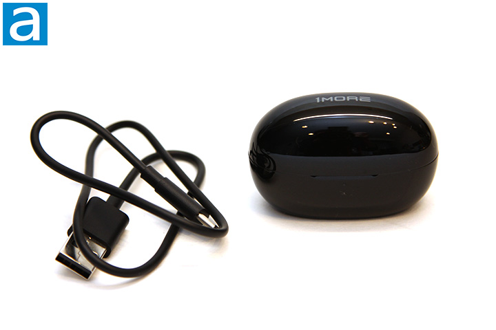 Like all true wireless earphones, 1MORE provides a carrying case that doubles as a charger for the earbuds. The charging case is consistent with the overall color scheme of our black 1MORE ColorBuds True Wireless, which has a glossy black finish with 1MORE's logo on top. Both its shape and design are quite conservative looking like an egg, but I am not complaining. That said, I prefer a matte finish more, mainly because the glossy finish will attract fingerprints and scratches will be more obvious. It measures in at 3.8 cm in height, 6.0 cm in width, 3.0 cm in depth, and weighs 40.3g with the earphones in, which is a fraction of the size of the Stylish True Wireless. This makes the ColorBuds compact and can be conveniently carried in a bag or jacket pocket. In front, there is one multicolor LED to indicate the current charge status, which is green for full battery, orange for medium battery, and red for low battery. It glows red when it the charging case is plugged in and charging, and turns off when charging is complete. It will also flash red if the charging case's battery is too low.