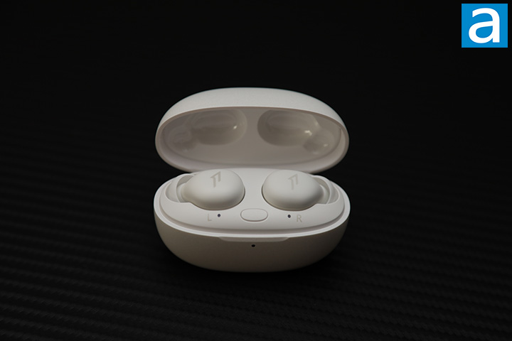 The 1MORE ComfoBuds Z True Wireless earbuds are revealed once you flip open the top of the charging case. The pairing occurs as soon as the case lid is opened rather than when the earbuds are removed from the case, making the process faster. The earbuds have a simple and clean appearance in a good way, where the exposed portion comes in a matte white finish with 1MORE's logo on the outside. I am a fan of its understated and low-profile look, and it works very well in not calling too much attention to itself in day-to-day use. Adjacent to each earphone on the case is also where a small white indicator LED is located to indicate its charge or pairing status. A pair button in located between the indicator LEDs.