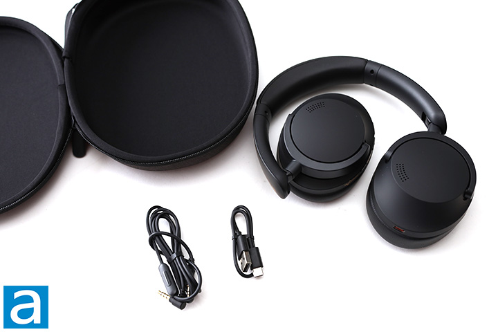 This is the second time I am covering over-ear headphones from 1MORE, with the first being the original SonoFlow. In the last few years, the company has progressed towards cleaner and classier looking products, and the SonoFlow series is a great example. The SonoFlow Pro keeps the original's conservative design along with the all-black matte finish, which means the SonoFlow Pro does little to call explicit attention to itself in public. Its subtle looks do not mean it lacks design, however. The design lines are clean and modern with sleek curves suitable for a consumer audio product, which is something I appreciate. You will see more in other photos in this review. Our photo above shows the SonoFlow Pro in its collapsed state. The earcups rotate and either side can be folded in to be as flat and compact as possible. However, the included case only fits with the right earcup folded in rather than the left. I like its low profile collapsed state, similar to the Philips Performance Wireless PH805. While one of my favorite headphones of all time, the V-MODA Crossfade II Wireless, is probably more efficient in terms of collapsed volume, a big bulgy device is harder to carry around when traveling than something that folds flat even if the total volume is slightly more.