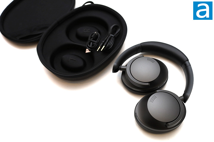 This is the first time I am covering over-ear headphones from 1MORE. In recent times, the company has progressed towards cleaner and classier looking products, and the SonoFlow is a great example. Its conservative design along with the all-black matte finish means the SonoFlow does little to call explicit attention to itself in public. Its subtle looks do not mean it lacks design, however. The design lines are clean and modern with sleek curves suitable for a consumer audio product, which is something I appreciate. You will see more in other photos in this review. Our photo above shows the SonoFlow in its collapsed state. The earcups rotate and either side can be folded in to be as flat and compact as possible. However, the included case only fits with the right earcup folded in rather than the left. I like its low profile collapsed state, similar to the Philips Performance Wireless PH805. While one of my favorite headphones of all time, the V-MODA Crossfade II Wireless, is probably more efficient in terms of collapsed volume, a big bulgy device is harder to carry around when traveling than something that folds flat even if the total volume is slightly more.