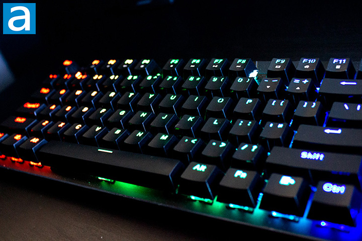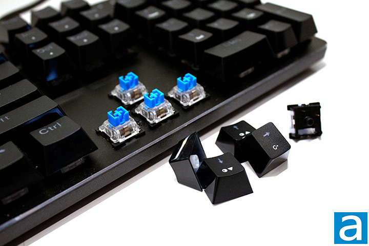 Moving forward to the switches, the 1STPLAYER Bullet Hunter MK6 features Outemu Blue switches, which are designed to be a clone of the Cherry MX Blue switch. I never thought I would enjoy the sound of these switches, but I have grown to like it. These have a 4mm travel distance and a 2.2mm distance to the actuation point. Unlike the OEM Cherry variant, this switch has an actuation force of 60g. As this keyboard is mechanical, the switches are much more solid compare to membrane keyboards. These Outemu Blue switches have a much smoother and more tactile feel to them, letting me know that I have pressed a key. Even though this keyboard is being marketed as a gaming keyboard, these switches are much more suitable for a typist as the audible and tactile feedback is useful to them. Generally, for gaming you will want lower force, linear switches like the Cherry MX Red as they can be actuated faster. I had a chance to try other mechanical keyboards here at APH Networks for comparison. Going back to the Outemu Blue switches, there is a small variance between genuine Cherry MX Blue switches that makes the genuine Cherry switches feel better, but the Outemu Blue switches are still good as an alternative.