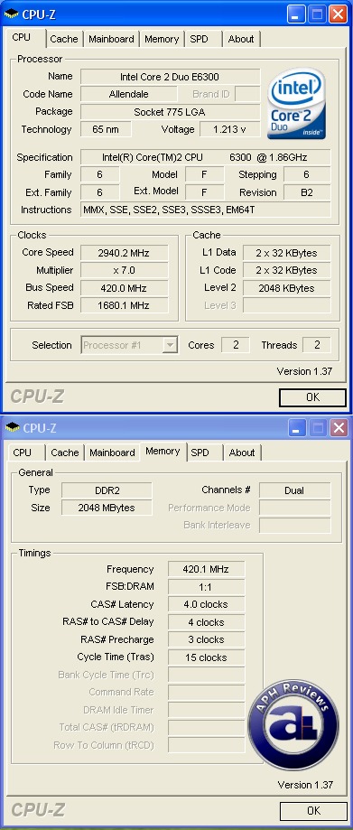 The abit AB9-Pro is quite an overclocking beast. Using stock cooler and 1.4000V (At least that's my BIOS setting anyway), I managed to reach 2.94GHz (420MHz FSB * 7) stable; 1:1 with my OCZ Special Ops Edition Urban Elite PC6400 RAM @ 4-4-3-15. 3.01GHz can actually be reached, but errors out after 7 minutes in Prime95. I loosened the timings on the RAM and increased the voltage, but it did not help; therefore it's probably not the RAM limiting. Heat was a factor on stock cooling though.