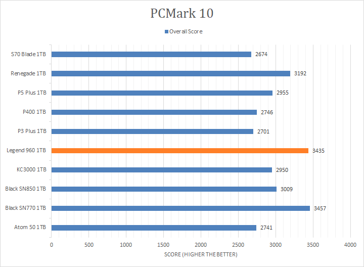 PCMark 10 is the latest version of the popular full system benchmark from UL. We used PCMark 10's Full System Drive Benchmark to test the performance of the ADATA Legend 960 1TB. According to UL, the Full System Drive Benchmark uses a wide-ranging set of real-world traces from popular applications and common tasks to fully test the performance of the fastest modern drives. The following traces were used and defined as follows:
