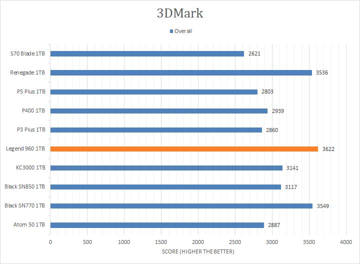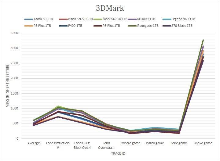 3DMark is the continuously updated version of the popular gaming benchmark from UL. We used 3DMark's Storage Benchmark to test the performance of the ADATA Legend 960 1TB. According to UL, the Storage Benchmark uses traces recorded from popular games and gaming-related activities to measure real-world gaming performance. The following traces were used and defined as follows: