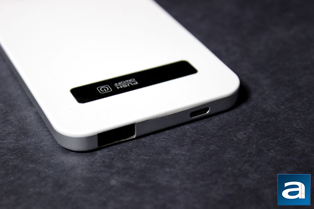 The backside is made up of a smooth brushed metal, and it feels nice in your hands. While it does mean the PV100 may slip out of your hands easier, it emphasizes a premium look and feel. The back also has specifications engraved onto the metal, as well as certifications and the serial number, in case you have to file any sort of warranty claim. As mentioned in the specifications, there is a one year warranty with this product. Overall, I have to say ADATA has practically nailed the PV100 Power Bank for aesthetics. Both the front and the back are very clean and polished. There is a bit of overhanging metal where it meets with the plastic on top, but it is not very noticeable. The power button also creaks whenever pressed, and I would have preferred it be a separate button, instead of part of the front black bar, but these faults are both really nitpicky. I have seen other portable chargers before, and this is by far the best looking one.