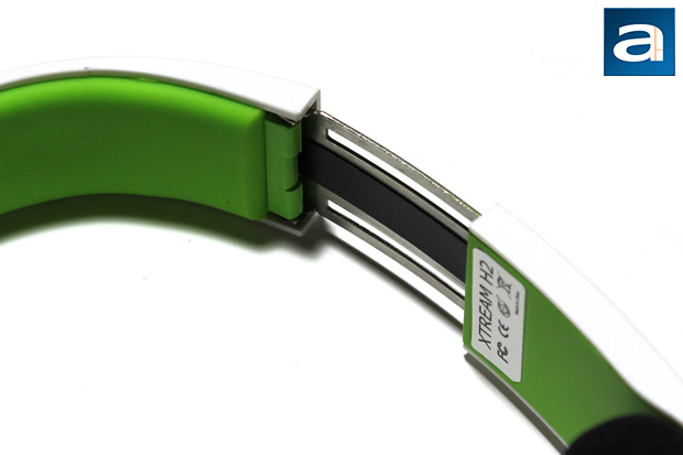 Finally, we get a closer look at the Adesso Xtream H2 itself. Design wise, I would say it actually looks decent. Of course, like I have said before, the colors will not be for everyone, but I personally do not mind the white and the green look. Not many things come in this bright of a green anymore, so the Xtream H2 stands out quite noticeably from the others. As you can see from the picture above, the majority of the outer plastic is white, with the buttons being green. Inside, the top rubber headband part and the sides are also green. A small “L” and “R” are also circled on their respective sides to indicate to users the side belonging to the corresponding ear. Extend the sides to fit for a larger head, and a metal arm is revealed, which hearkens back to the old school days of the Sony Walkman and the headphones of those times. I would describe the Adesso Xtream H2s as very simplistic, but not necessarily minimalist. It gets the job done, but it is by no means an inspiration of design. Rather, as a whole, it reminds me of an economical version of the Bang & Olufsen Form 2i headphones showcased at the Consumer Electronics Show earlier this year.