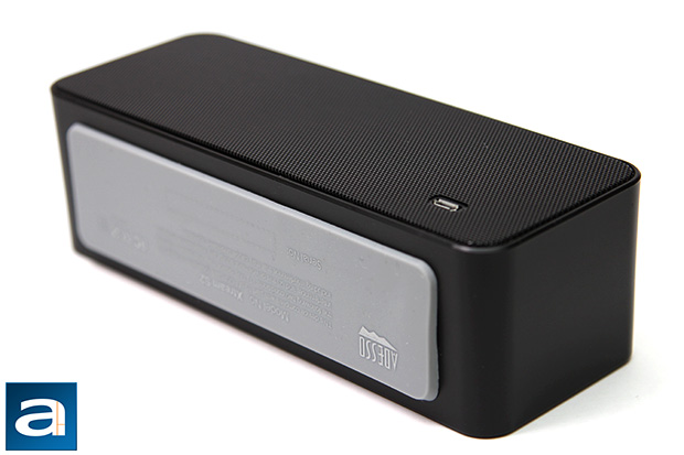 Here is a shot at the back and bottom of the Adesso Xtream S2. There is no speaker at the back; the grille is there for aesthetic purposes only. A micro USB input connector can be seen at the bottom right corner, which charges its non-removable 1800mAh Lithium Polymer battery. As far as the battery life of the Xtream S2 is concerned, as car manufacturers always like to say, "your mileage may vary" -- but I think even Adesso themselves are pretty confused. On the website, the specifications state 10 hours of music, 11 hours of talk time, and 800 hours of standby. However, on the datasheet and retail box, it says it has 6 hours of music, 9 hours of talk time, and 250 hours of standby. I don't know about you, but the variance is so large, we might as well be talking about two completely different products. The only that in common is the website states 4 hours of charging time, and 4 to 5 hours of charging time on the datasheet, but this is really not that helpful.