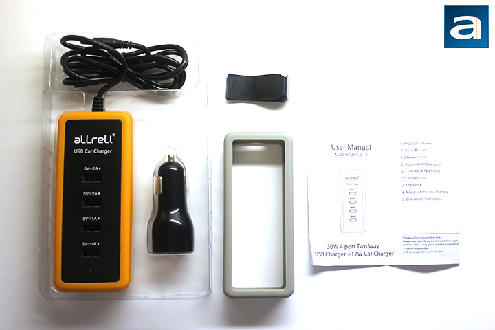 This is the first time we are reviewing products from aLLreLi, a company started in 2004. In addition to USB charging hubs we are reviewing today, they also make stuff like keyboards, mice, phone cases, and screen protectors. The boxes holding our review units are designed in a simple manner, each with minimal lettering of the brand, model name, and features on it. In addition, each box has a small window on the left hand side to show consumers the contents of the box. Each product is placed on top of a plastic tray holding it, and adding extra protection to the outside elements. Inside the box is also a user manual for those who need a little more reading material, or do not know how to properly plug in a 12V car adapter.