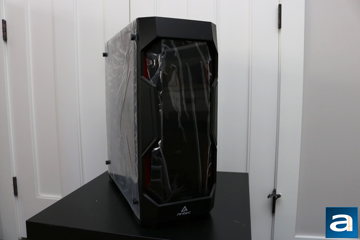 The Antec DF500 is as if a modern look got smacked together with the traditional. Let us go over the modern part first. The front plastic panel, that would would look amazing with some LED fans, looks pretty modern, especially with the red accents on the side. Otherwise, the panel is also angled forward, deviating from the traditional box style. The front of the case presents the Antec DF500 as a proper gaming chassis. But there is more. Moving to the side of the case, there is a modern looking plastic panel covering the entirety of the side. It seems as if the bezel-less trend from smartphones have reached PC cases. Hopefully they will not introduce a notch too, haha. The first time I saw the case, I mistook both the front and side panels for tempered glass, which would have added a greater sense of quality. The rest of the case is matte black with the I/O on top of the case at the front.