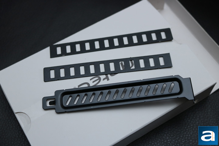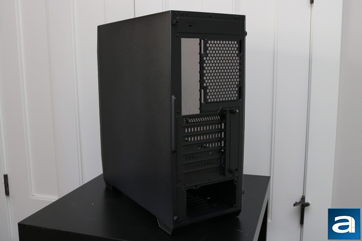 As far as the back of a case goes, the Antec DF500 is as traditional as it gets. Although there are a couple of smaller things that stand out once you notice it. I am missing the supposedly included 120 mm fan for the rear exhaust. I do not know why it was missing, but I am sure this will not be the case with retail sold cases. The other thing I noticed were the mismatched expansion slot covers. At first I thought it was just a mistake, but after installing all the components, it was clearly a cost saving measure. Six of the seven expansion slots are attached to the case and need to be broken off to install any components there, and they cannot be reinstalled. Antec includes two more removable slots matching the one already installed. I found this to be a really strange choice from Antec, as it does mean the covers do not match. It is at the back of the case and is not in view, but it could be a bother. At its price range of $60 at press time, it should be a given for all the expansion slots to have the ability to be reinstalled. Furthermore, even though the looks do not match, if someone does fill all the slots and then downgrade to a single video card, there will be open holes at the back of the case. Pictured below is how different these expansion slot covers are.