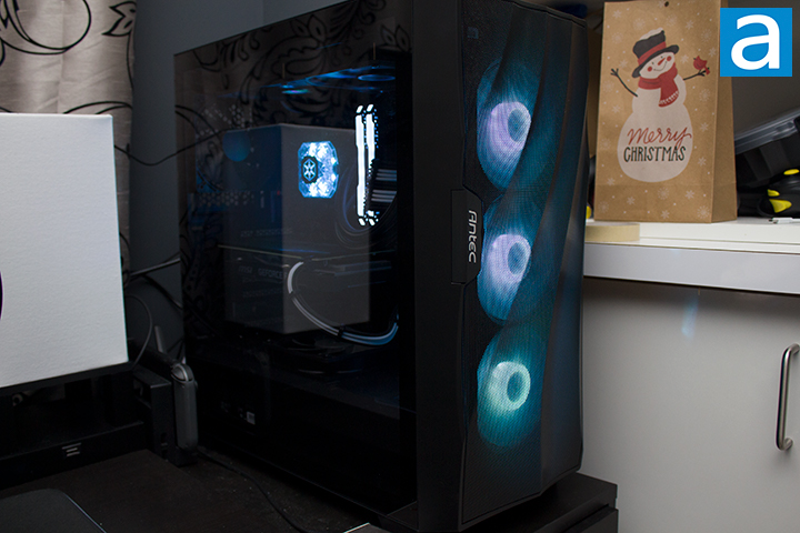 Cases are an incredibly important aspect of a computer as it serves the purpose of both looks and functionality. Antec has done a great job with the DF700 FLUX. Starting off, I can honestly say Antec has always provided me with an excellent unboxing experience. The DF700 FLUX has all of its documentation and screws inside of a small box safely tucked inside the drive bay from the factory. I just love this method of packaging because I know there will be no loose components rattling around inside. The physical look is quite appealing; utilizing tempered glass on one side and a mesh panel in front. The mesh front panel was implemented very well as it provides both functionality and an aesthetic appearance with its wave design, while allowing RGB LEDs to shine through. The branding is not overly noticeable when in use as well. When looking at the inside of the DF700 FLUX, the layout is standard, making the installation process very easy. You can utilize the included Velcro straps well and there is plenty of space for cable management. When considering this case was designed with cooling as its priority, Antec had done an amazing job as they also have provided five fans. The front fans have ARGB LEDs that look quite good. Up to six fans can be hooked up to the preinstalled hub, making cable management easy. Antec adds what they call a reverse fan for the purpose of pulling air from beneath the PSU shroud and pushing it through your GPU we have first seen in the P10 FLUX. There are a few areas of improvement though. Despite accepting a PWM signal from your motherboard, the included fan controller was unable to change the speed of the connected fans. Having 4-pin PWM fans rather than 3-pin voltage-controlled fans would also have been better. The PSU is partially exposed by the shroud, which is not very appealing in my personal opinion. More cable tie-down points inside would have been nice. Lastly, the position of the front I/O on the right side is positioned quite far away when in use in a standard configuration. For about $85 USD at press time, the Antec DF700 FLUX is competitively priced for a chassis that has both looks and seriously awesome airflow.
