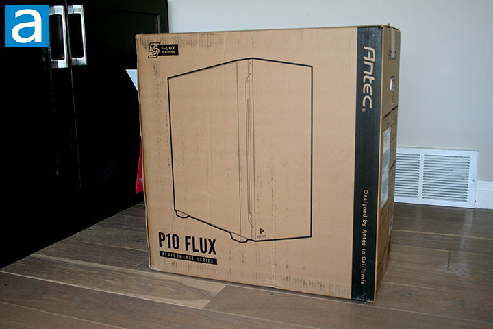 The Antec P10 FLUX arrived via Purolator Ground from Amazon's distribution center in Vancouver, BC. This box served its purpose of being both the shipping and retail package. While the box itself was not in terrible condition, it was not exactly clean either. Dark scratch marks can be seen on the edges of the front side and there was also a noticeable tear on the right side just below the handle. Luckily, this did not cause any issues when carrying the box. There was some Styrofoam between this tear and the product itself, so I was not concerned about the chance of any scratches or marks on the actual case itself -- the tear only cut through to reveal some of the Styrofoam. In an ideal world, there would not be any scratches deep enough to reach the Styrofoam. I think Purolator could have done a better job, but overall, the case made it here in one piece. The front of the box contains an image of the case, showing the right and front sides. The Antec logo is printed on the top-right side of the box while the P10 FLUX label can be seen on the bottom left side just below the case image. Specifications can be found on the side and back for retail customers to view before purchasing.