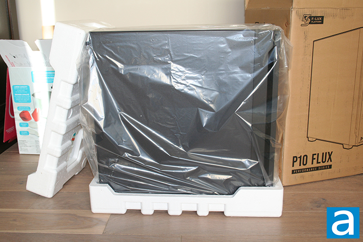 Two Styrofoam blocks are used to pad the case inside the packaging, which I think is always very good practice. Along with the Styrofoam blocks, the case itself is wrapped in plastic to prevent it from experiencing any scratches during shipment. The Antec P10 FLUX arrived in very good condition when I eventually unwrapped it, showing no signs of physical damage anywhere. The case comes with various screws for mounting all the necessary PC components along with zip ties for cable management. The reverse fan comes inside a white box zip tied to the PSU shroud. Documentation can also be found inside the case for the user's convenience.