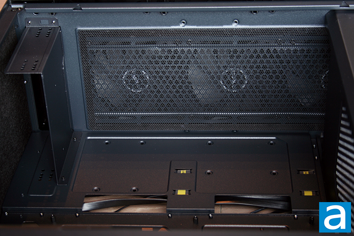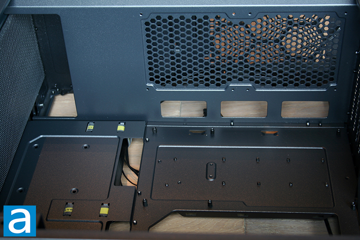 As noted earlier, we can see the PSU shroud is not entirely solid when taking a closer look at the bottom. Three cable routing holes can be seen directly on top of the PSU shroud. However, I feel like these cutouts are a little too close to the motherboard area and could potentially make for a tight cable squeeze, especially for users with regular ATX motherboards.