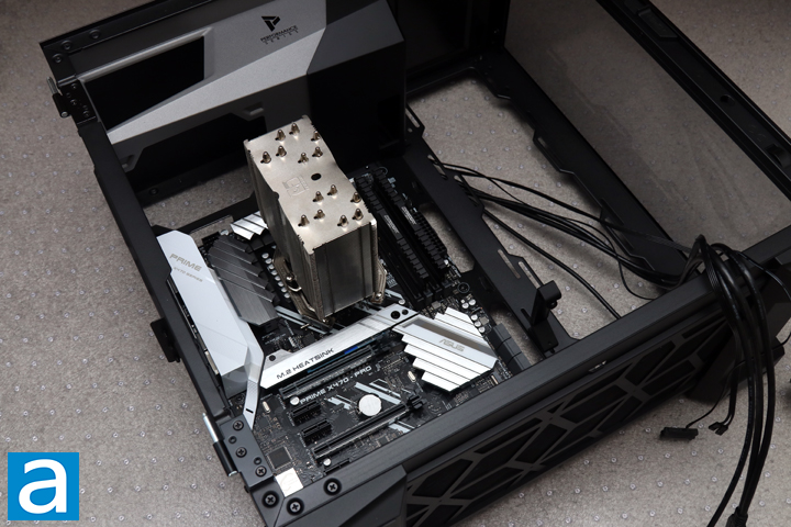Unlike what I usually do, I started with installing my motherboard into the Antec P120 Crystal in addition to other things plugged into the motherboard. This means mounting the ASUS Prime X470-PRO with an AMD Ryzen 7 3700X installed. I also put the Ballistix Elite DDR4-4000 2x8GB memory kit and a Western Digital Blue SN500 NVMe SSD 500GB to use here. On top of the processor, I mounted the Noctua NH-U12A here. At a height of 158mm, this cooler fits within the maximum 185mm height specified by Antec. As we have already mentioned, you could also go the liquid cooling route, especially with the two locations for radiators as large as 360mm.