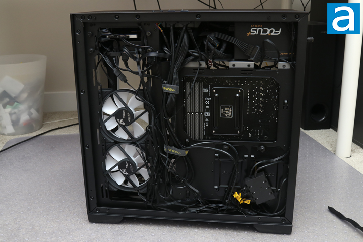 Otherwise, cable management at the back is one thing I think Antec could improve upon. For one, there seems to be a limited amount of ways to tie cables down. Antec did include quite a few Velcro straps to hold a large amount of cables in place or bundle excess cables, but the lack of a cable valley to place thicker cables means you have to be more intentional about tidying up this area. This is even more annoying with the many cables from the RGB fans. Increasing the space behind the motherboard tray would also have gone a long way to alleviate this problem. Also, the front I/O cables seem to be quite a bit longer than usual, which only compounded the lack of cabling space. Finally, covering the cabling holes with rubber grommets would have been appreciated to hide the extra cables from showing through the glass panes.
