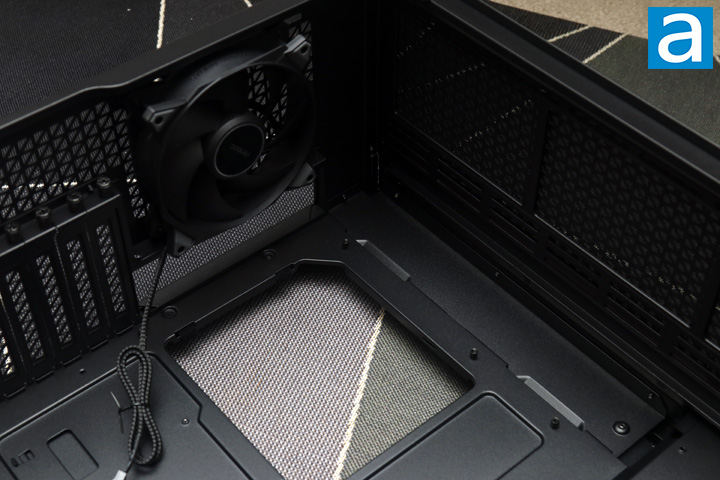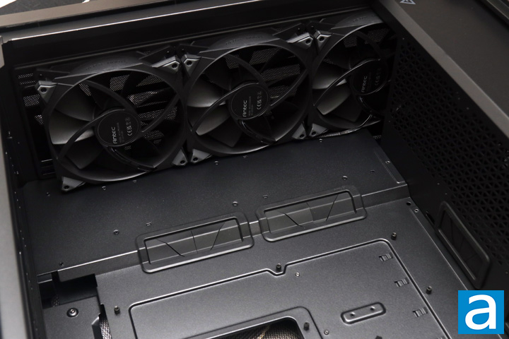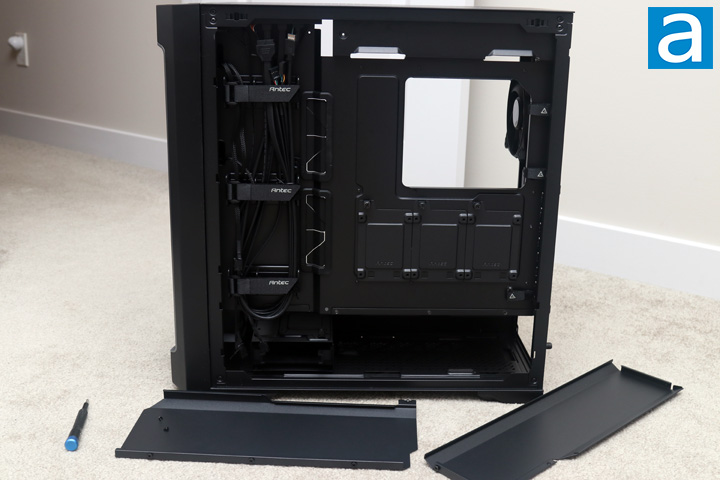 Finally, in the basement, we have an area to mount the power supply at the bottom of the Antec Performance 1 FT. It slides in from the back and sits on top of rubber pads. This ensures there is enough clearance between the bottom and the fan of the power supply for some breathing room.