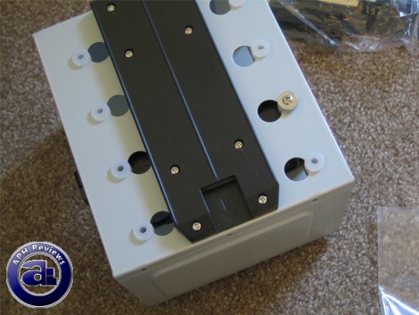 Several cutouts were implemented quite cleverly in the Antec P182. In our photo above, you can see that one of the side rails has a section to allow even relatively thick cables to pass through without interfering with the chassis door. A small section is also featured to allow cables to get from the power supply half of the bottom chamber to the hard drive section, however that gap is not nearly as wide, so fat cables will not pass through. (See bottom corner of the vertical separating metal piece in between.)