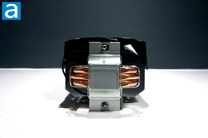 The fin on the top of the heatsink is the same width as the other fins. The heatpipes are also exposed at the top of the heatsink. Generally, manufacturers will use a thicker top fin to aid in creating a sturdier build. This fact matters less when you consider the design of the full heatsink cover fan design ARCTIC opts to use on the Freezer A13 X, which hides away the top entirely. The choice to cover the with the full heatsink cover is a nice touch to the aesthetics of the heatsink, creating a more different and unique look. There are three sintered heatpipes. The design of the Freezer A13 X is unique with its heatsink cover and I appreciate the contrast of the black cover and white fan.