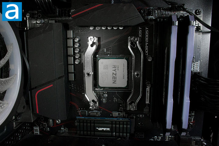 The installation of the ARCTIC Freezer A13 X was incredibly straightforward. The steps were so simple, I do not think an actual manual was necessary. Despite this, there is still a very useful manual to help you out with moving images to help visually show you how to install the cooler. ARCTIC took advantage of the use of the internet rather than having a physical paper manual. The stock AMD backplate is needed to install the mounting bracket for this cooler. Note that this cooler can only be used with AMD’s AM4 socket, but an Intel variant is also available for those with Intel CPUs. You will need to install the included standoffs, then mount the mounting clips onto the standoffs with the included thumb nuts. It is important to note the fan cannot be mounted onto the heatsink until after the heatsink is installed onto the motherboard. All parts used for the installation are made out of metal, meaning the build quality of these parts is strong enough to hold up this cooler.