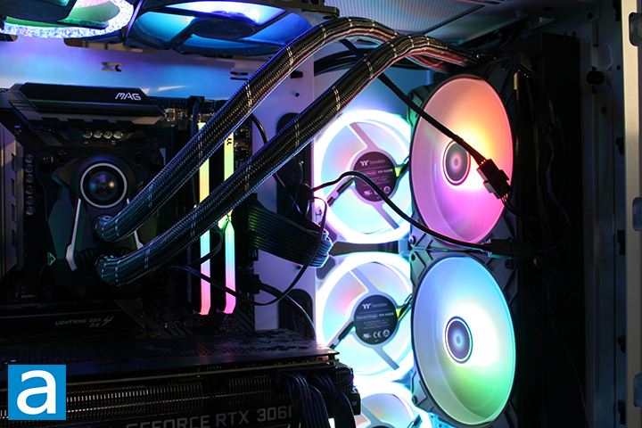 Sound is often perceived differently by people, but we try to make our subjective audio tests as objective as possible. On a scale of 0 to 10, where 0 is silence and 10 is a heavy metal concert, I would rate the ARCTIC Liquid Freezer II 280 A-RGB around 2.0/10 when idle and 3.5/10 when under full load. These ARCTIC P14 PWM A-RGB fans emit a moderate level of noise when under full load. Under day-to-day use, these fans are much quieter. Like with the fan on the Freezer A35 A-RGB, these fans are definitely not 10 dB quiet when running at maximum speed. One reality users will have to face when purchasing an AIO cooler is there will be more moving parts in the system, which makes for more sources of noise. The pump emitted a low and relatively quiet humming sound at full speed. At normal speed, the pump is basically inaudible. The VRM fan on the pump emitted little to no noise, being essentially inaudible.