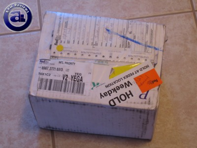 The story behind the big "Hold" sticker on the package was that I phoned FedEx to hold the parcel at their shipping depot, so I can pick it up on the way home next day. Don't worry, it's nothing like DHL. (Don't even remind me of them! ARGGG)