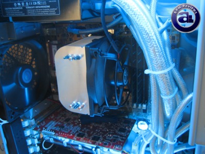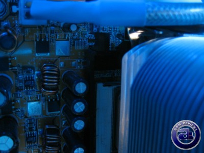 These are the "bent fins" used to redirect air over your motherboard components. If you are an overclocker, this will come in handy occasionally as you jump your voltages on your CPU to achieve just that that extra MHz. By the way, the above photo was very hard to take -- shoving my hand and camera between a 120mm fan and heatsink. That is, without getting hit by the 120mm fan, at the time of taking the photo just 1mm away from my hand and camera.
