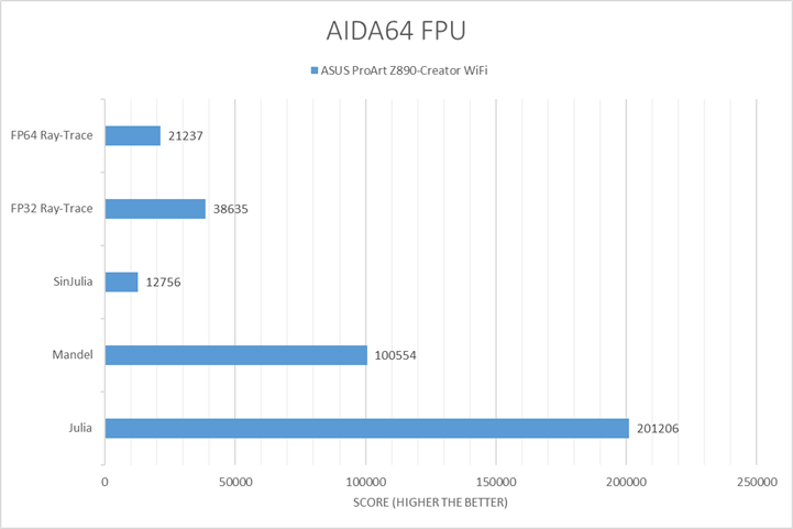 As always, our first set of benchmark results presented on the table are data obtained using AIDA64 CPU tests. Version 7.60.7300, the latest release at press time, can be downloaded from our Downloads page. The CPU, FPU, and memory tests were conducted. Overall, the results were expected for a system of this configuration.