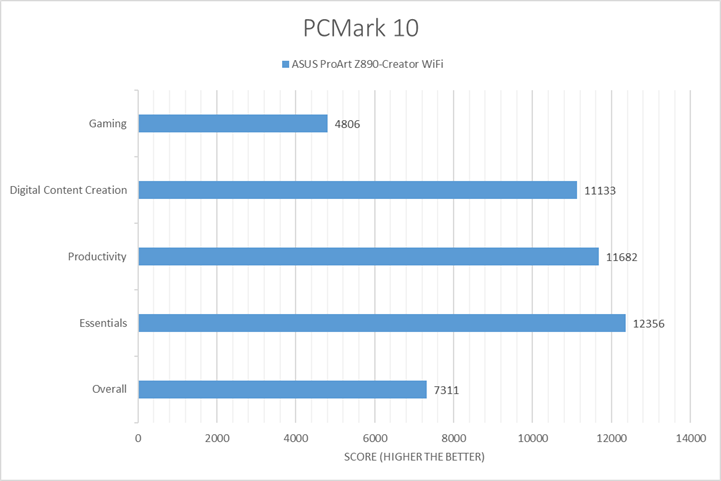 PCMark 10 is a popular full system benchmark from UL. A standard benchmark run provides scores in three categories, which includes Essentials, Productivity, Digital Content Creation, and Gaming. Wrapping up all four categories is an overall score in the end. This is a synthetic test that aims to emulate real-world conditions, which provides interesting insight to the performance of your system. The results produced for all tests were expected for our hardware configuration.