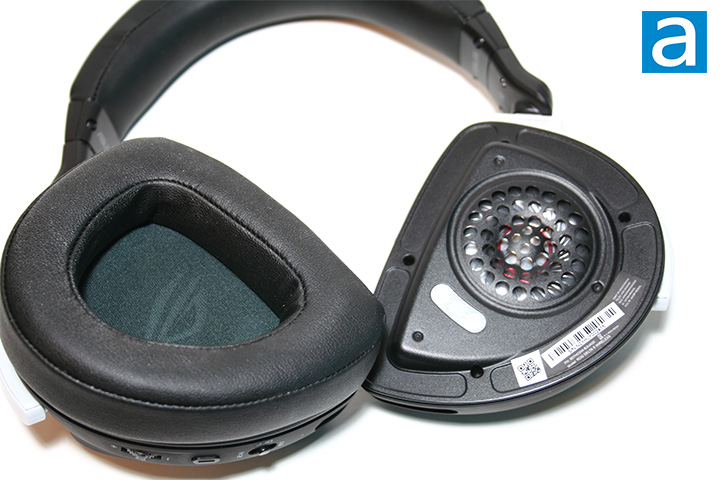 Moving on to the ears, the cups are wrapped in protein leather, which I found comfortable enough in day-to-day use. The ASUS ROG Delta S Wireless ears are D-shaped, which should be a good fit over most ears. The ROG logo can be seen printed on the inside of the ears. Underneath the surface, the Delta S Wireless uses neodymium magnet drivers. The frequency response is 20Hz to 20kHz with an impedance rating of 32Ω. The arms that the ears sit between can tilt to best fit your head. As mentioned earlier, the earcups on the headset can rotate so they rest flat if you wear the headset around your neck. This also makes it easier to carry around. Two extra ear cushions are included as well, which are made out of a mesh-fabric material.