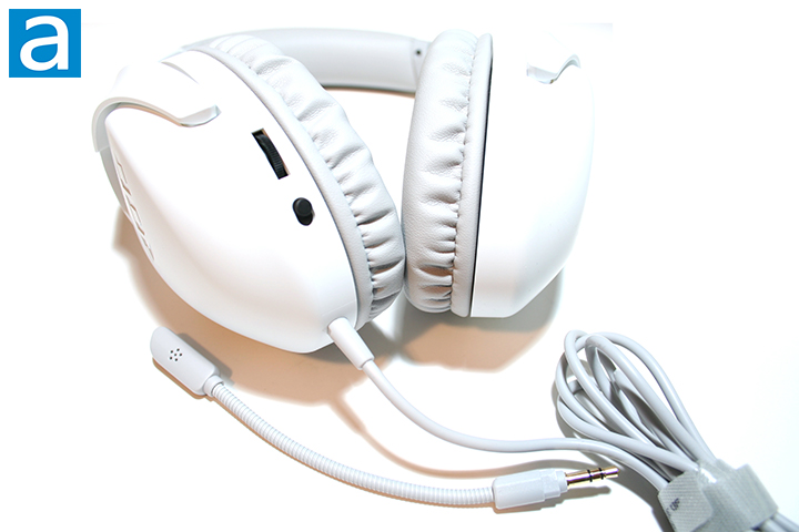 The bottom of the headset contains the control buttons that most headphones these days would come with. All of the controls are located on the left ear cup, with these controls being the analog volume wheel and a sliding microphone mute button. The analog volume wheel allows users to control the maximum volume of the headphones, while the microphone mute button allows users to mute themselves if needed.