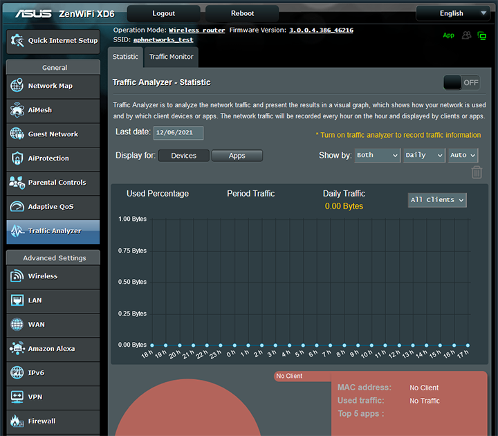 The next section, Traffic Analyzer, is where you can find network usage statistics. There are more fancy graphs and charts, updated hourly, to show how your network is used and by which devices or apps, shown in the above screenshot. The Traffic Monitor tab is where you can monitor incoming or outgoing traffic on different physical interfaces.