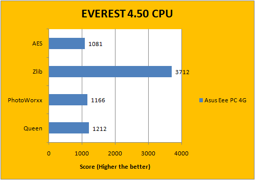 At 70MHz FSB or 280MHz rated with QDR (Like all Intel processors from the last few years, there are four lanes connecting to theoretically quadruple the FSB), again we didn't expect astonishing performance. Generally speaking, these numbers were very acceptable in this form -- and we are benchmarking an Eee PC for low cost and portability, not a performance oriented system anyways. Just for references.