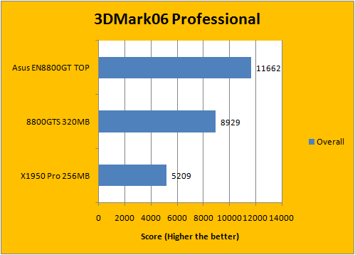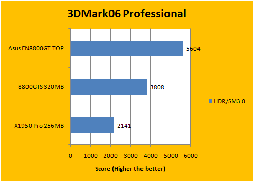 Real life benchmarks aside, how can anyone forget 3DMark06? Using default settings at 1280x1024, the factory overclocked NVIDIA 8800GT again destroyed the competition. The G92 based 8800GT is again far ahead of the previous generation G80 reference NVIDIA 8800GTS 320MB -- I was actually very surprised by these results put out by 3DMark06. I checked other 8800GT/8800GTS owner's 3DMark06 results that was provided to me, and the results are very similar -- a good indication that these 3DMark06 results are correct as above. The 8800GT certainly is impressive.