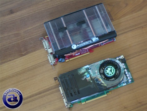 On the cool side, the Asus EN8800GTS 320MB, like the box, has a nice Ghost Recon Advanced Warfighter theme to its heatsink!