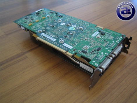 The green PCB on Asus' EN8800GTS 320MB has an approximate measured length of 23.5cm; pretty much identical in length when compared to the ATI Radeon X1950 Pro PCB. Similarly implemented, the 6-pin PCIe connector is located at the end of the card. The difference between the two products is the location -- one on the outer edge, and one near the middle. For cabling purposes, I would prefer the connector to be near the middle or the inner edge instead of the outer edge. (All 8800GTS boards should be identical though.)