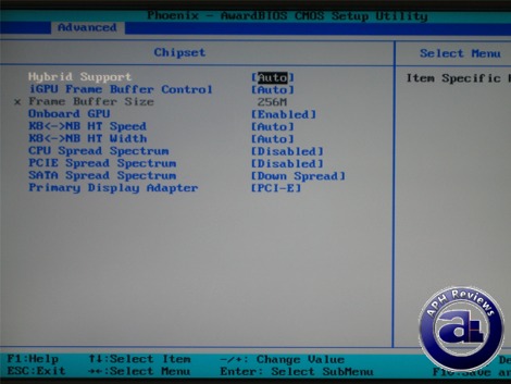 - Frame Buffer Size - The Frame Buffer size must be set to a minimum of 256 MB for HybridPower to work.