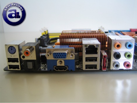 The backplate connectors on the Asus M3N-HT Deluxe. It's quite a simple design -- there's really not a lot to see here. There's only four USB ports, one PS/2 port (If you still need it), and the standard array of digital and analog audio connectors powered by the popular ADI 1988B audio codec. A single NVIDIA powered Gigabit ethernet port can also be seen above the Marvell 6111 supplied eSATA port. In terms of video, the M3N-HT Deluxe has both VGA and HDMI (And DVI with the included HDMI to DVI converter) outputs -- whether you want to use it for just casual computing or NVIDIA HybridPower, there's a load of flexibility in this regard. The only thing I would like to highlight is that the NVIDIA 780a only has a single-link DVI; and are able to drive flat-panel displays supporting single-link TMDS at 162 MHz pixel clock. When connected to the motherboard GPU, the maximum resolution will be 1920x1440 -- or mainly if you are concerned about 1920x1200; the standard for 24" widescreen monitors.
