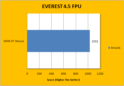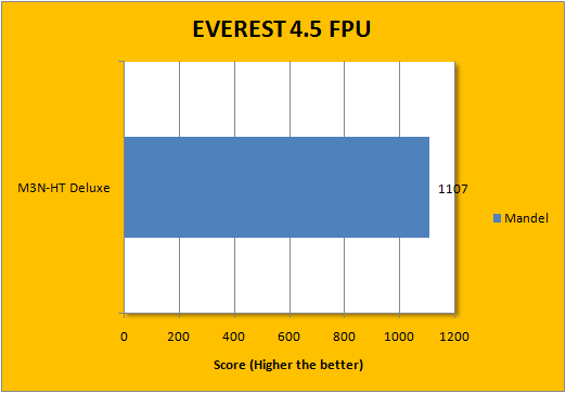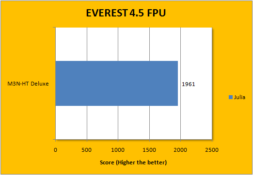 EVEREST FPU tests on the Asus M3N-HT Deluxe running an AMD Athlon 64 X2 4400+ Brisbane CPU.