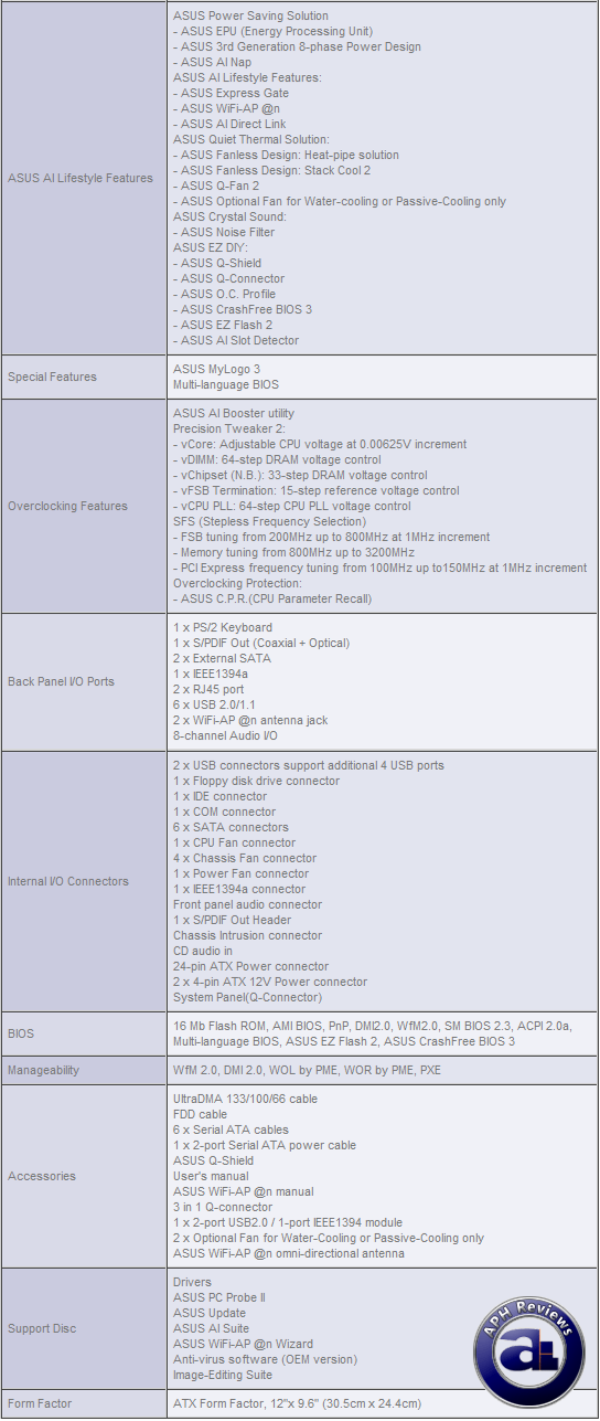 Before we move on, let's examine the specifications of this motherboard, as obtained from Asus' website: