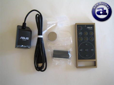 One of the things I want to highlight is the included Asus Ai Remote. Powered by a CR2025 3V coin battery, the remote offers very basic functions as you can see in our photo above. Certain buttons can be reconfigured via software, and as far as I know you can even get your computer to turn on by remote -- although I never seemed to got that to work even when it was plugged into the designated USB port.