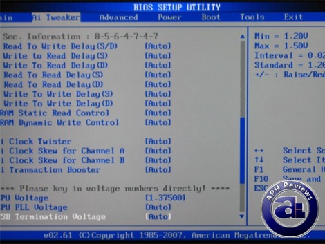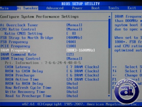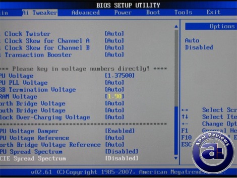 Loaded with an AMI BIOS, we've grown quite accustomed to it as expected from an Asus motherboard. On the other hand, overclocking now has its own dedicated tab in the BIOS on the Asus P5E3-Deluxe. Standard overclocking options are available the moment you load it as shown in our photo above.