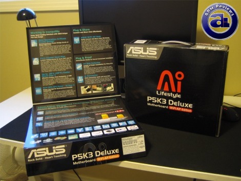 Anyway, moving onto the retail box, with primarily a black color scheme, the Asus P5K-Deluxe comes in pretty fancy packaging. Printed with "AI Lifestyle" logos and caption at various locations of the box, the double-phase package design is something we've seen previously only with high end products from the same company.