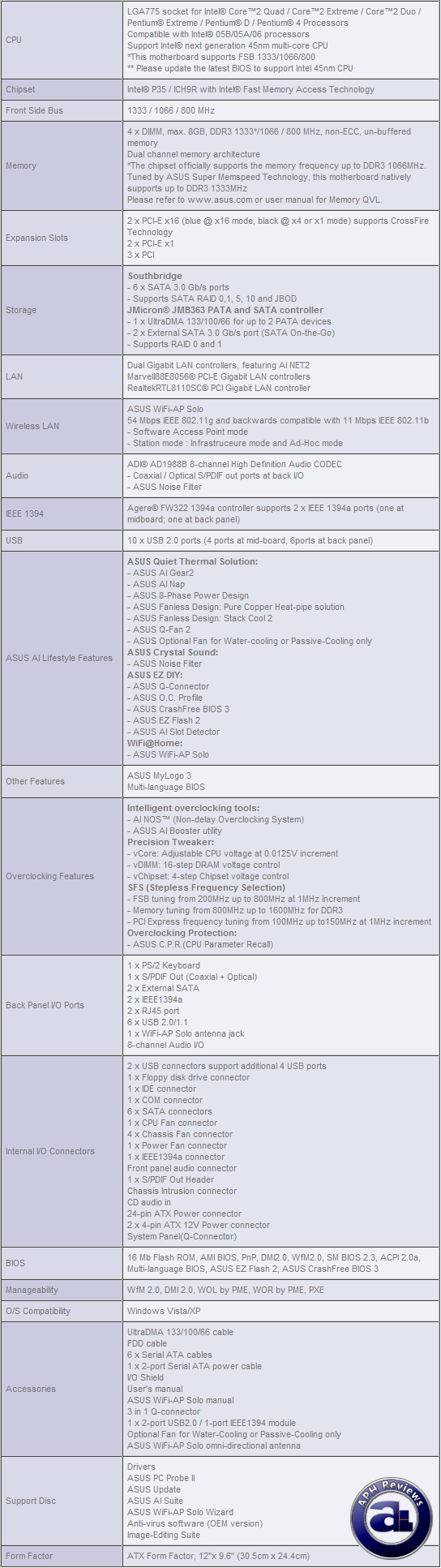 Before we move on, let's examine the specifications of this motherboard, as obtained from Asus' website: