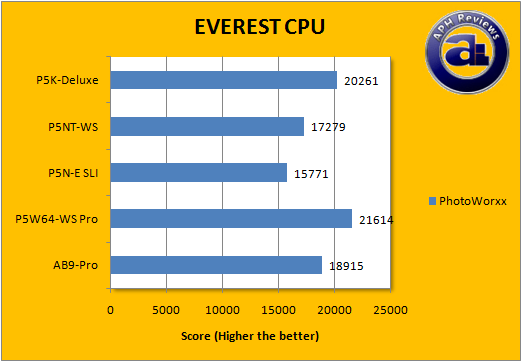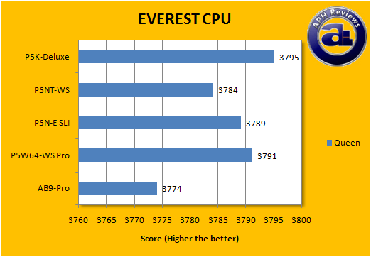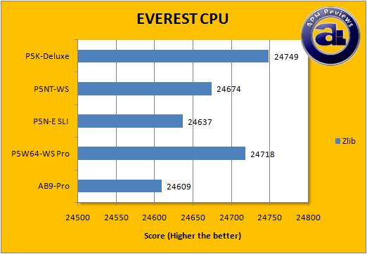 Surprisingly, when it comes to the EVEREST synthetic CPU tests, the P5K-Deluxe didn't do bad at all -- in fact, it came out top -- by a few points ;)