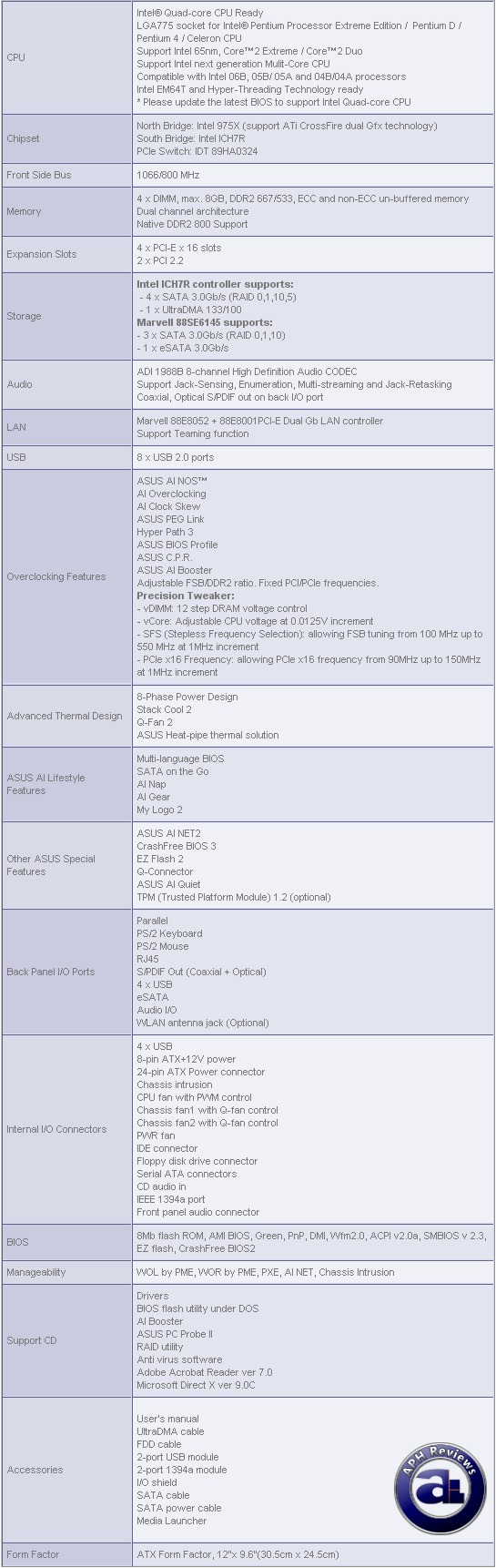 Below are specifications and features of the Asus P5W64-WS Professional as obtained from Asus' site: