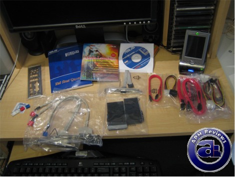 Also included are Asus' Q-Connector with one for each Firewire, USB and case features -- basically small labeled blocks for scattered single pin connectors to connect into such as case power, reset, LEDs, speakers and such. This conveniently 'converts' the scattered cables into a single block -- a great accessory in my opinion.
