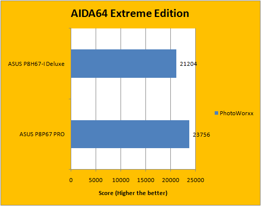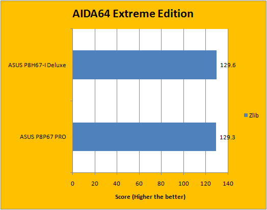 As always, our first set of benchmark results presented on the table are data obtained using AIDA64 CPU tests, formerly known as EVEREST. These synthetic tests, while not directly reflective of real life applications, provide very valuable insight to relative performance of computer hardware with easy to understand numbers. As you can see in our charts above, the ASUS P8H67-I Deluxe's performance is quite consistent across the board. The biggest variation occurred in our PhotoWorxx results, but this particular test likes higher bandwidth memory -- and in this particular case, the DDR3-1066 SODIMM equipped ASUS P8H67-I Deluxe had an obvious disadvantage compared to the DDR3-1333 equipped P8P67 PRO.