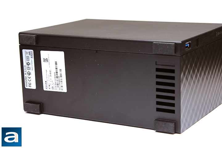 In order to accommodate the slick diamond plate finished plastic cover, the ASUSTOR AS3102T no longer feature removable front loaded drive trays. The tradeoff is, obviously, a bit of convenience, and the lack of ventilation slots on the front cover means cooling performance will be affected slightly as well. For the current design, airflow over the hard drives driven by the rear mounted cooling fan inside the system, and enters the NAS through ventilation slots at the bottom; more on this later.